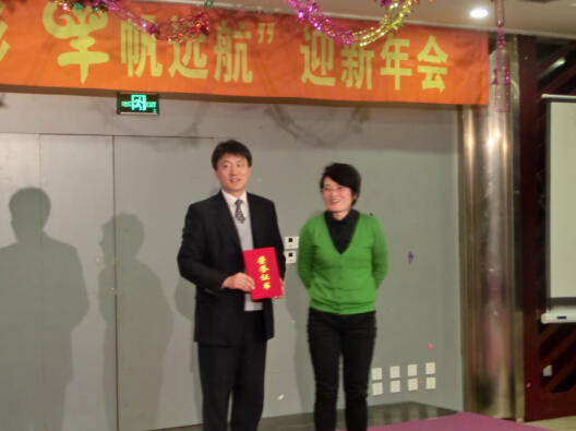迎新年会对2014年度的先进员工进行了表彰,在会场宣读了沈阳williamhill官网《关于2014年先进表彰的决定》,并向先进团队和个人颁发了奖状,同时倡议大家学习先进、时刻以先进为榜样,发扬榜样在生产、生活中的带动作用,在公司形成“赶、学、比、超”的良性竞争范围。