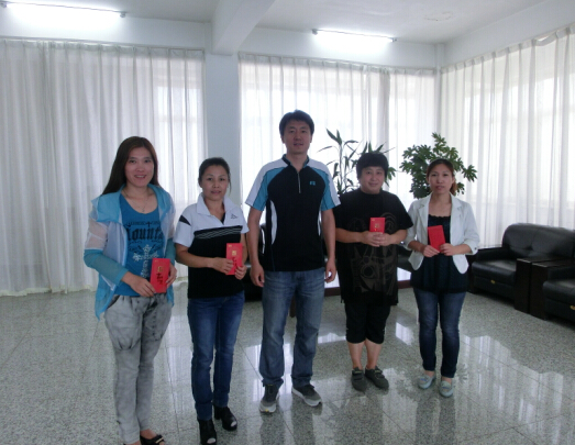 2015年8月30日,沈阳williamhill官网工会主席李韵代表公司分别向金亚慧、李彩清、刘金霞、施展、王寒等5名员工的升学子女送上祝福,由各位家长代为领取公司发放的助学金,并请各位家长转达公司的祝福和问候。