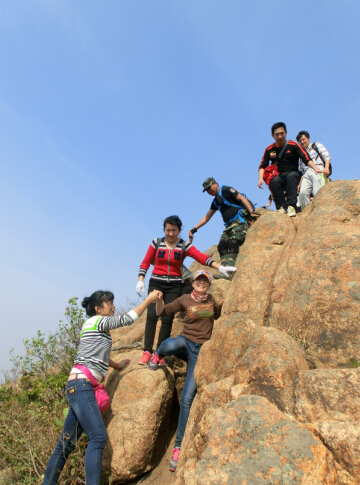 在整个登山过程中,充分体现整个团队相互帮助、团结协作的融洽的氛围。在平坦的道路上大家谈笑风生,相互间开着玩笑;在崎岖的山路上,大家彼此帮扶、相互牵引,共同度过暂时艰难;在有人掉队时,大家相互鼓励、支持,共同前行。正是这种扶持与协作,让大家共同抵达了最高峰。