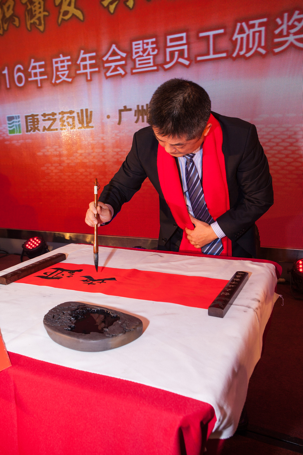 晚会上,除了精彩的水晶鼓和员工歌舞表演,董事长洪江游先生也大展歌喉,为大家献唱一曲,将气氛推向高潮。深情的演唱令员工们情绪高涨,接连上台献花。williamhill官网副总裁李幽泉先生也在悠扬的古筝伴奏中,登台献上墨宝,将“福”字送给大家。