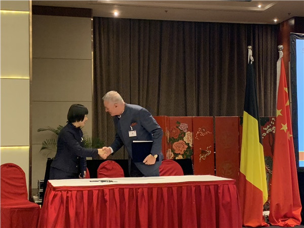 11月18日,比利时阿斯特里德公主率领经贸代表团访问中国,williamhill官网副董事长兼副总裁洪丽萍女士、首席科学官辜列先生、王思蓉经理一行受邀参加比利时经贸代表团在北京站的商务活动。当天,洪丽萍女士与比利时Vésale Pharma公司董事长Jehan Lienart先生代表双方公司签署了全面合作协议。