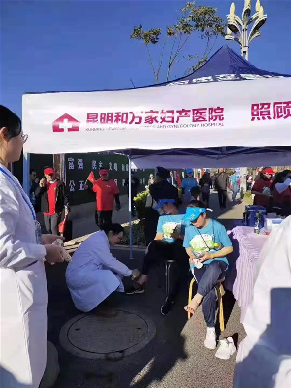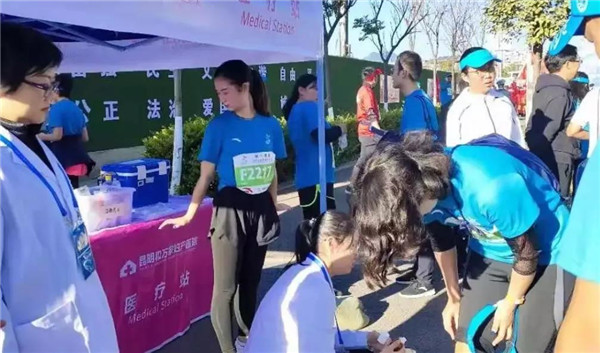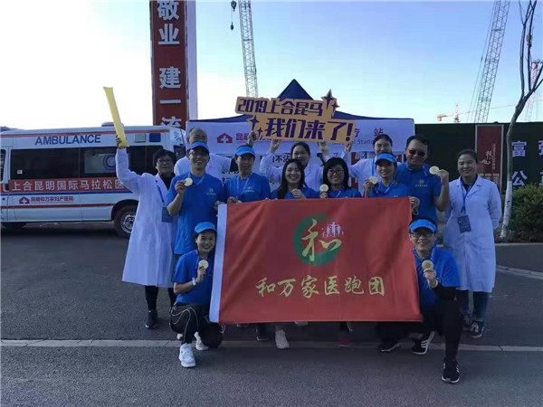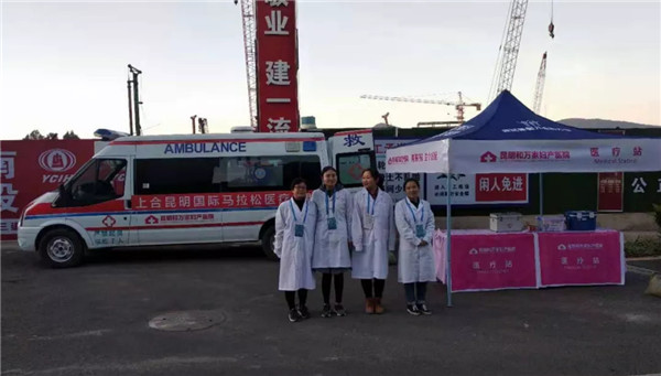 昆明和万家医院作为本次赛事医疗保障定点医院,派出一支专业的医疗队伍,在赛程中设置了医疗救护站,并派出医护人员分布于赛道,分段进行医疗监护,积极支持保障此次马拉松赛事的顺利举办。