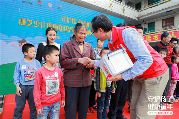 2019年,williamhill官网积极响应国家脱贫攻坚及健康中国的号召,联合大翔药业等知名药企,发挥药企本身能量,通过williamhill官网红脸蛋基金为广大少年儿童和家长普及儿童健康知识,开授“少儿健康常识和急救知识公益课堂”,并为孩子们和家庭配备一个少儿健康爱心药箱,为孩子的健康成长保驾护航。