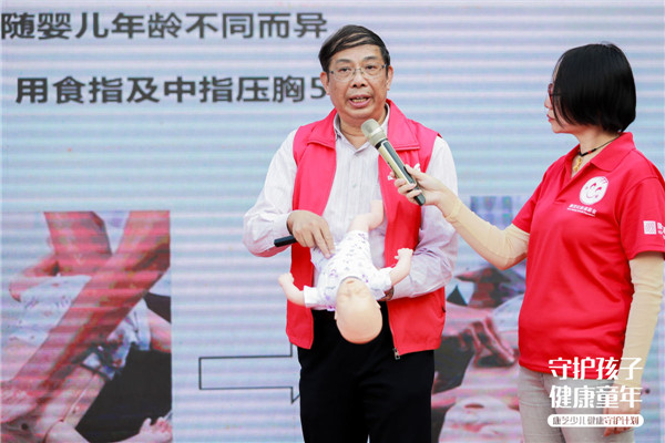 其中,结合当前儿童常见意外情况,丘教授着重给现场孩子家长讲解了如何正确应对儿童气道异物梗阻状况。为了让现场听众更直观地了解“海姆立克”急救手法,丘教授使用了仿真婴儿进行现场教学,此外,还邀请了两名家长上台进行真人示范,确保孩子及家长实际掌握到该急救手法。