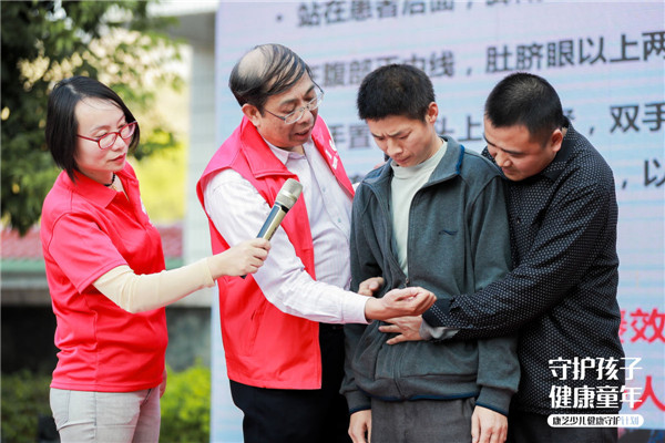 △现场家长上台演示“海姆立克”急救手法
