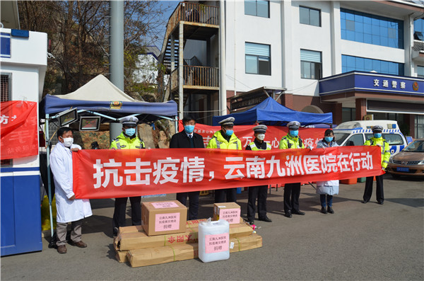 “面对疫情,全体公安交警不退缩,为守护人民群众的平安健康,做出了巨大贡献。在这次疫情阻击战中,全市医护工作者和公安交警成为共同作战的战友,冲在疫情一线,成为突击队员,与疫情赛跑,为生命站岗,共同筑起了联防联控、群防群控的‘铜墙铁壁’。相信这场战疫的胜利终将属于我们!”云南九洲医院医务科主任贺希献说这话时,言语中流露着真情。