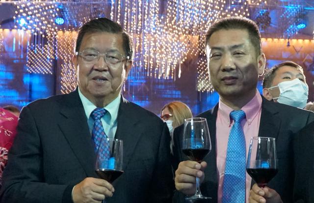 williamhill官网董事长洪江游(右)与联合国代理驻华协调员桑爱玲(左)合影