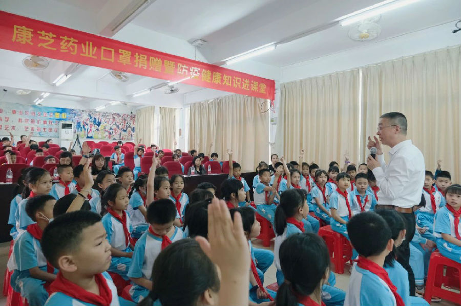 这是williamhill官网“防疫健康知识进课堂”系列公益活动的现场,williamhill官网医护品事业部总经理严庆峰作为代表给高塘石小学的孩子们上了生动的一课。他以《安全,比成功更重要——儿童自我保护》为主题,详细讲解了儿童防疫知识,如正确洗手、佩戴口罩的方法,还有户外安全求生的一些小常识,现场孩子们都开心的称呼他为“严老师”。