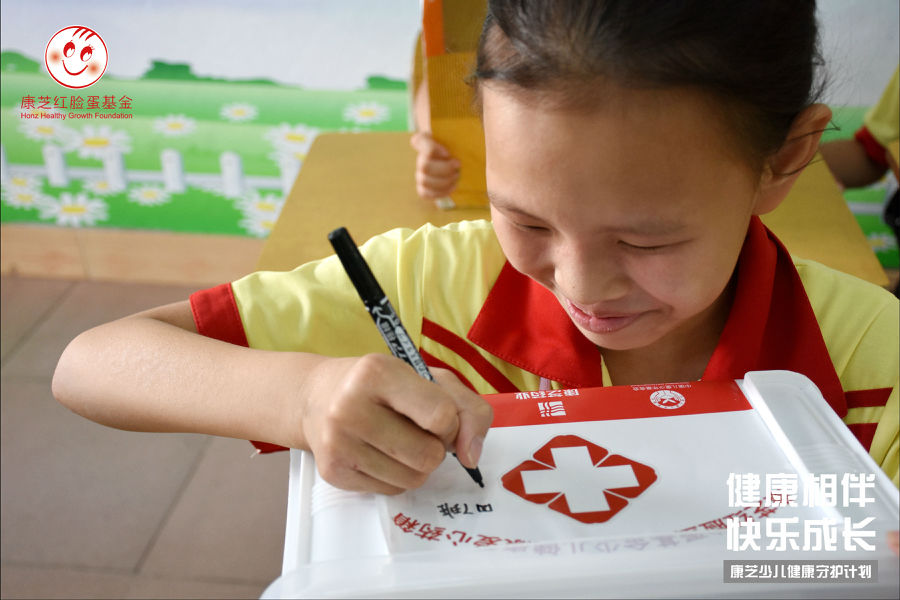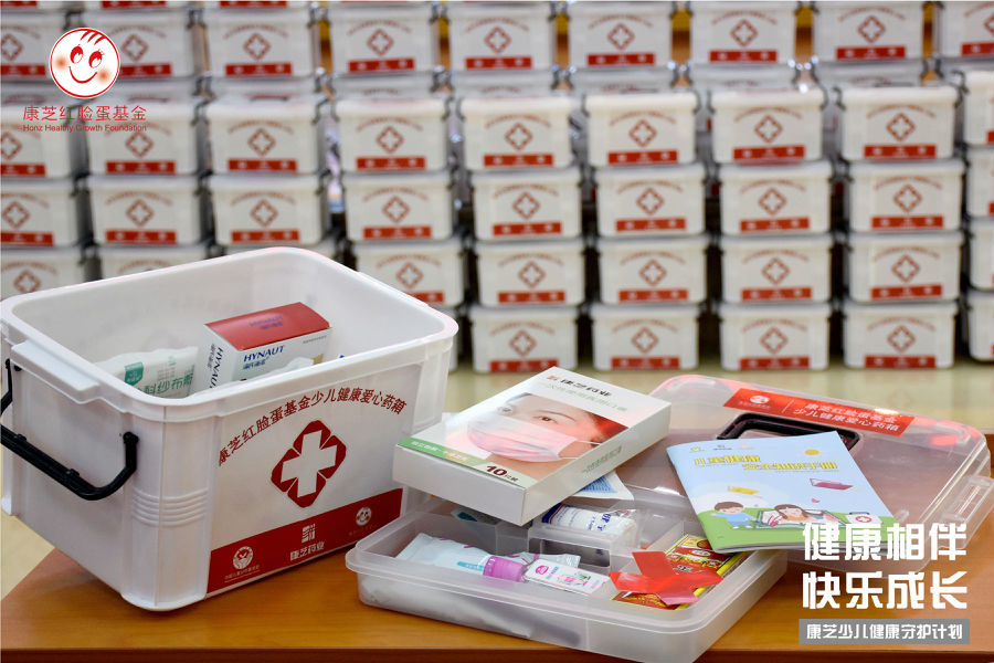 除了来自干货满满的红脸蛋少儿健康课堂“精神食粮”,本次活动还给孩子们送来了“特别”的儿童节礼物——williamhill官网红脸蛋爱心药箱,药箱里贴心的放置了健康手册、一次性防疫口罩、止血贴、急救毯、常规应急药品等,基本满足家庭的日常医药及防疫需求。本次捐赠以班级为单位,保证覆盖了贫困家庭及外出务工人员子女家庭,为孩子们及其家人提供多一道健康的保障。