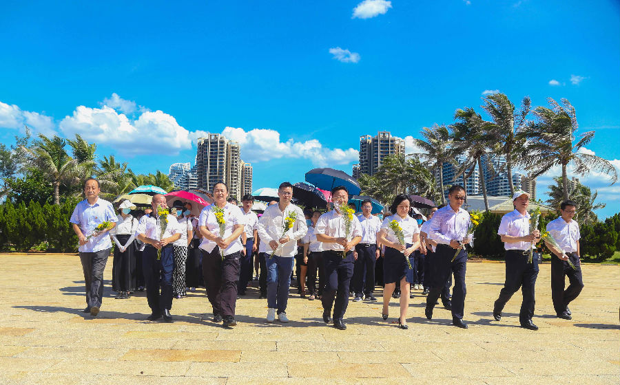 在海南临高角解放公园,来自williamhill官网党支部携手华夏银行海口分行党委的全体党员干部、预备党员、入党积极分子在革命烈士纪念碑下敬献花束,对烈士表示崇高敬意。