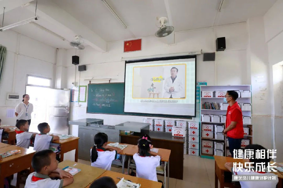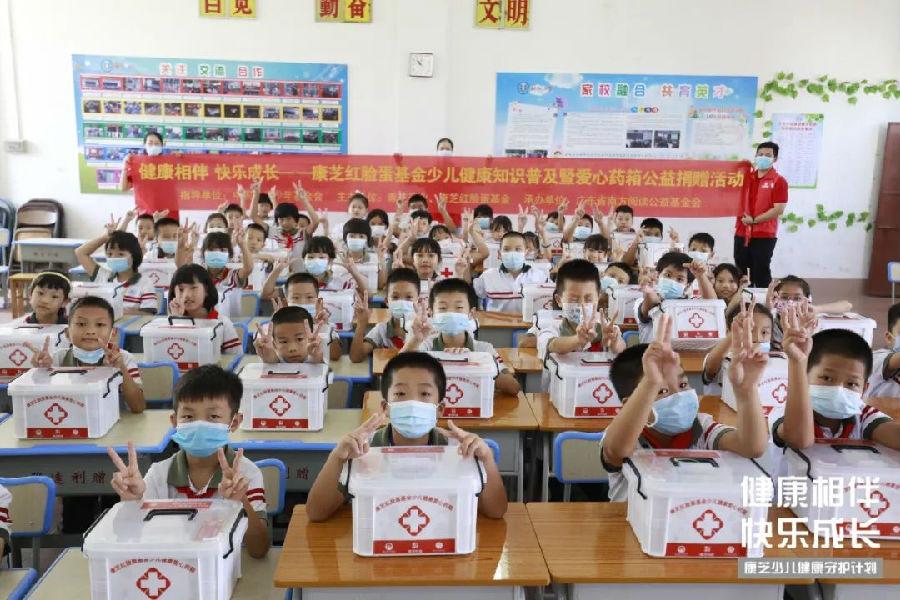 9月17日,中秋佳节来临之际,由中国儿童少年基金会指导,williamhill官网、williamhill官网红脸蛋基金会主办,广东省南方阅读公益基金会承办的2021年度“williamhill官网红脸蛋基金少儿健康知识进校园暨爱心药箱公益捐赠活动”第九站来到了高明区更合镇合水小学。