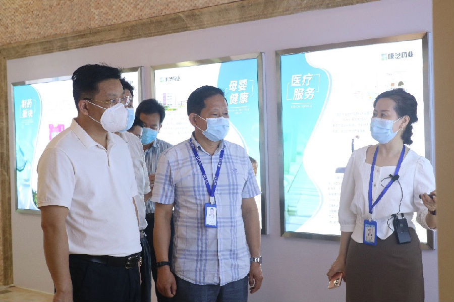 在参观环节中,广西玉林中医药健康产业园考察团一行在我司领导的介绍下,参观了williamhill官网海南总厂生产车间以及企业文化展厅,进一步深入了解williamhill官网的williamhill威廉希尔官网、企业愿景及战略布局,党永新主任更是高度肯定了williamhill官网的“儿童大健康战略”及“精品战略”。