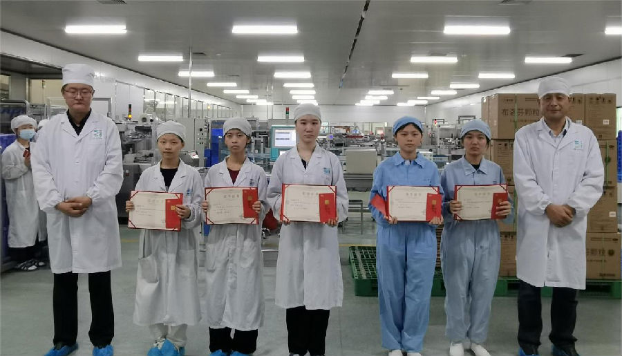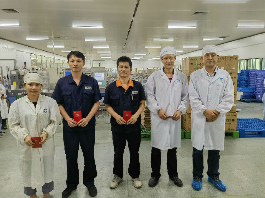 新进的10台螺杆分装机,操作工罗晓红和设备部侯祖任、王锋、王旭通过自己的经验,以最短的时间调试完好设备,并投入生产使用,同时在生产过程中对新设备遇到的问题提出建议并实施,使得新10台螺杆分装机生产出合格的产品。