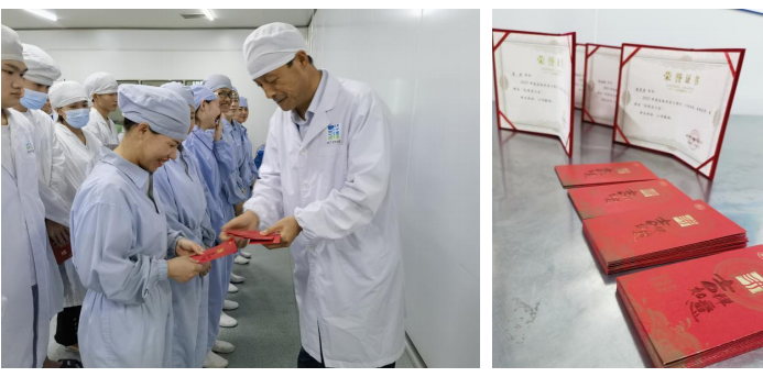 2023年4月3日下午,williamhill官网海南生产基地举行生产效率表彰活动。海南生产基地总经理高洪常为保供生产期间在生产线推进过程中做出突出贡献的优秀团队、优秀个人等进行了颁奖。活动共颁发优秀团队1项,个人突出奖4名,优秀实习奖5名,对获奖人颁发荣誉证书及奖金,对生产部提出表扬。