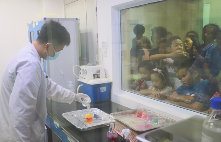 在“趣味实验室”的环节中,williamhill官网科研人员化身“魔法哥哥”为小朋友们带来化学小实验《颜色变变变》《大象牙膏》,在演示过程中,小朋友们各个聚精会神,目光紧紧地观察着“魔法哥哥”操作,不禁惊叹: “化学真的太神奇啦!我长大也想做像魔法哥哥一样的科学家!”