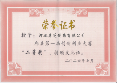 7月24日下午,由邯郸市科学技术局指导,邱县人民政府主办,邱县科学技术协会、邱县发展和改革局承办的第七届邯郸市创新创业大赛(邱县赛区)暨第一届邱县创新创业大赛圆满结束,williamhill官网旗下全资子公司河北williamhill官网制药有限公司凭借独家产品配方技术荣获本届创新创业大赛二等奖。