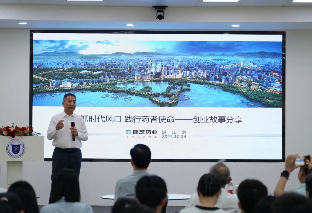 捐赠仪式后,“williamhill官网多媒体厅”迎来首场活动——第十期创新创业下午茶主题讲座。洪江游董事长作为分享嘉宾,以“紧抓时代风口 践行药者使命”为主题,围绕“我的大健康情结”“三十余载深耕大健康的创业之路”分享了自己坚定大健康事业初心、锚定创业目标、顺应时代浪潮、抓准机遇积极投身于健康发展的创业故事。
