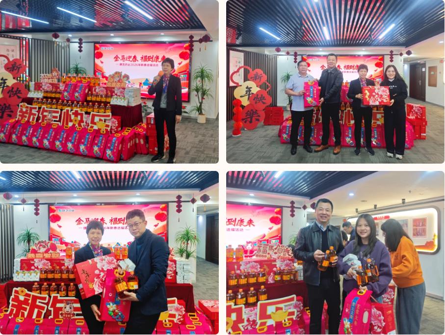 丽萍总在致辞中表示,公司始终牵挂着员工的幸福,衷心感谢大家过去一年的辛勤付出。借此机会,祝大家身体健康、生活愉快、阖家欢乐、幸福美满。接过承载着公司关怀的年货,员工们脸上洋溢着幸福笑容,纷纷表示将带着这份温暖与鼓励,在新一年里勇毅前行。