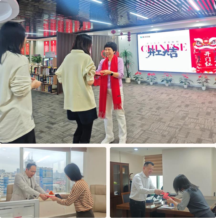 新春复工首日,公司副总裁洪丽萍为广州区域全体员工派发了开工红包并送上新春问候,同时鼓励大家在新的一年里凝心聚力、勇毅前行,以更饱满的状态投入工作。