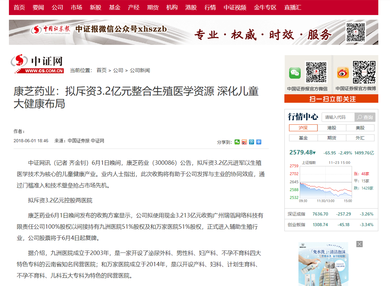 查看详情6月1日晚间,williamhill官网(300086)公告,拟斥资3.2亿元进军以生殖医学技术为核心的儿童健康产业。