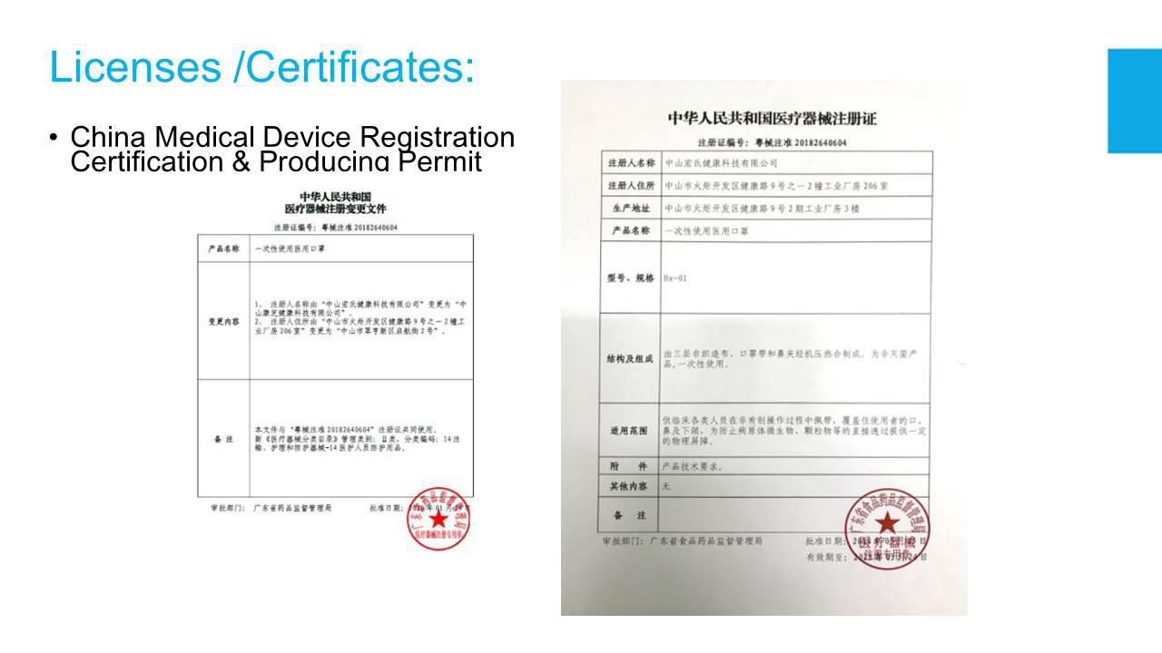 ·EN14683:2019 +AC:2019-Type I,Type II ·3-ply, Ear Loop ·Composed of Non-woven fabric and Melt-blown fabric
